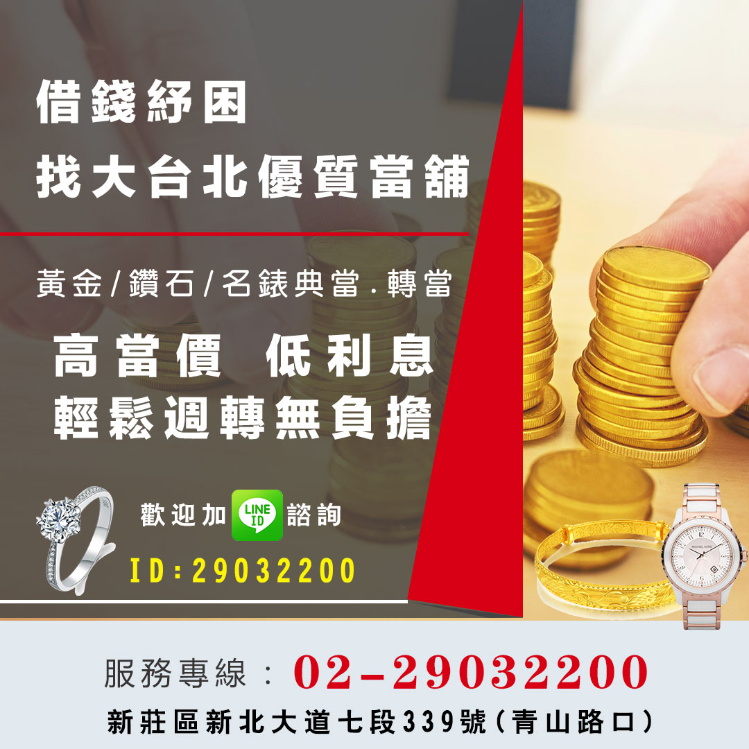 8.提供典當借款服務地區涵蓋: 新莊、泰山、樹林、林口、五股、龜山、迴龍地區