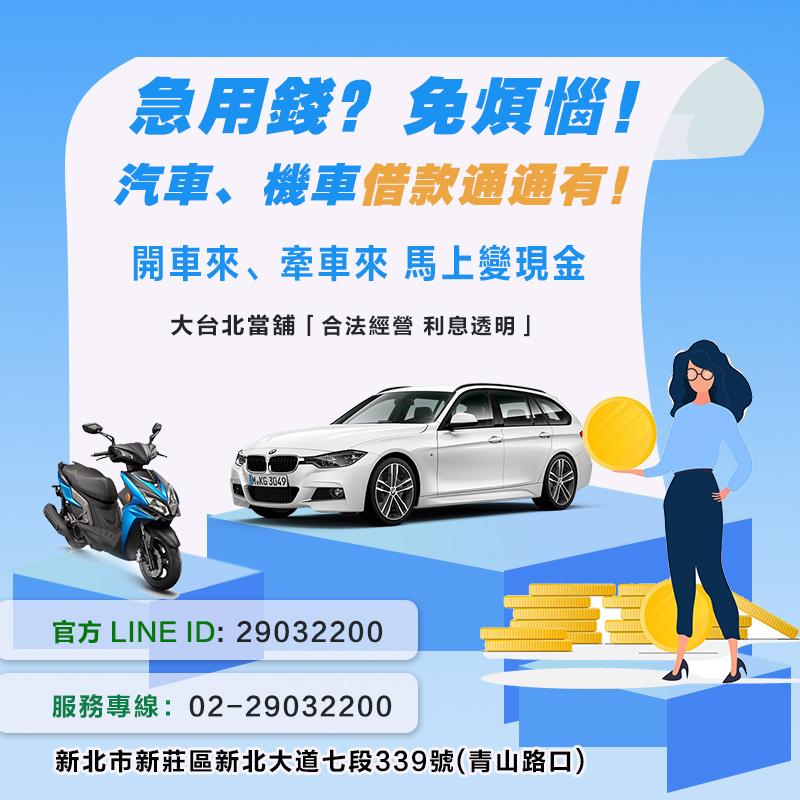我們是新莊在地優質政府立案當舖老店,樹林汽車借款借款有保障。